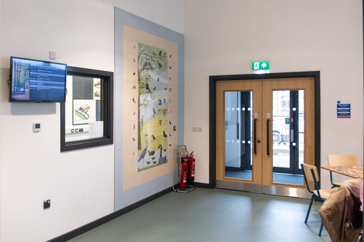 The building was constructed with a structural steel frame, traditional masonry external walls and an insulated single-ply roof with solar panels installed and battery storage, a latest generation air source heat pump and fitted with high-performance windows and doors to create a durable, excellent rated energy-efficient envelope. Internally, the centre was completed to a full fit-out standard to provide a welcoming lobby, café and servery, kitchen, office and meeting rooms, toilet facilities, storage, a dedicated plant room and a large community hall capable of hosting a wide range of activities and events. Mechanical and electrical systems were fully integrated throughout to support the comfortable, flexible use of the space along with a commissioned artwork installation capturing some of the history and wildlife of the very local surrounding the area including pieces of art that were made by local residents in a meet the artist workshop carried out during the construction period.