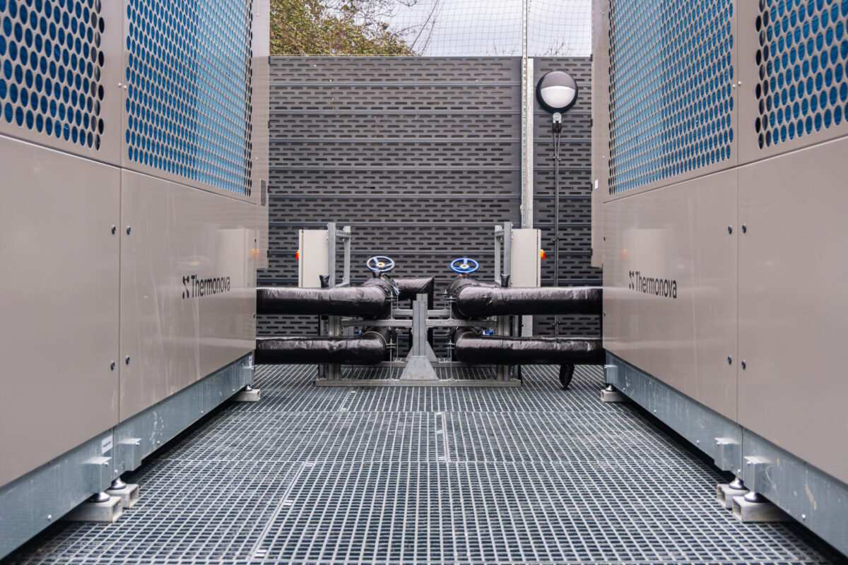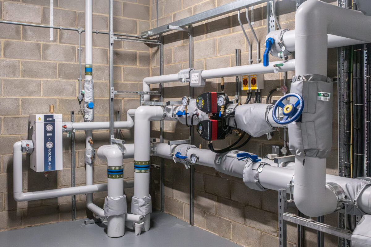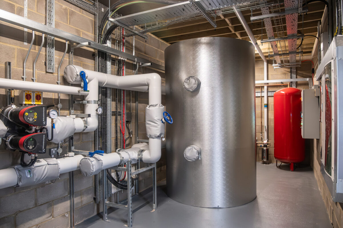 The works comprised the construction of a new secure external Energy Centre and ASHP compound, together with significant upgrades to the school’s existing plant rooms. The compound accommodates two large air source heat pumps and a purpose-built Energy Centre housing heat storage, water treatment and control equipment, and was designed to be safe, acoustically controlled and fully accessible to support long-term operation and maintenance. New pipework was installed both underground and within the undercroft of the existing school buildings to distribute the heat efficiently from the Energy Centre to the upgraded school plant rooms to allow connection to the heating system.