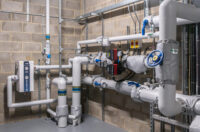 Within the existing plant rooms serving the old and new school blocks, legacy gas-fired hot water equipment was removed and replaced with new hot water heat pump systems, complete with dedicated storage vessels. The retained gas boilers were reconfigured to operate solely as a backup system. New valves, meters, pipework, sensors and controls were installed to support the upgraded infrastructure, with targeted modifications made to elements of the heating and ventilation systems to ensure compatibility with lower-temperature heat pump operation. All works were carefully phased to maintain continuous heating and hot water provision throughout the project.